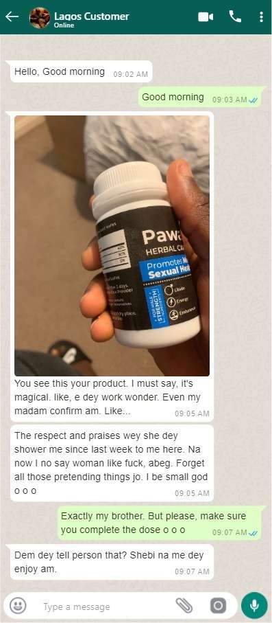 You know that moment when she begs you to stop but she actually meant that you should continue. So, you keep going, and with every thrust, she keeps moaning and begging for more and then you look at the time and see that you've been at it for over 40 minutes to 1hr plus, and when you're finally done, she sleeps off. When this happens, there is this joy and pride that you feel knowing fully well that you did a very good job on her. This is the kind of experience you CONSTANTLY enjoy whenever you are on Pawacap.